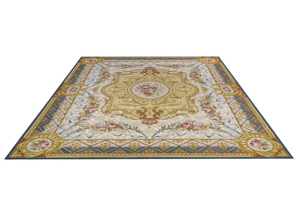 Savonnerie Aubusson Blue Medallion Rug