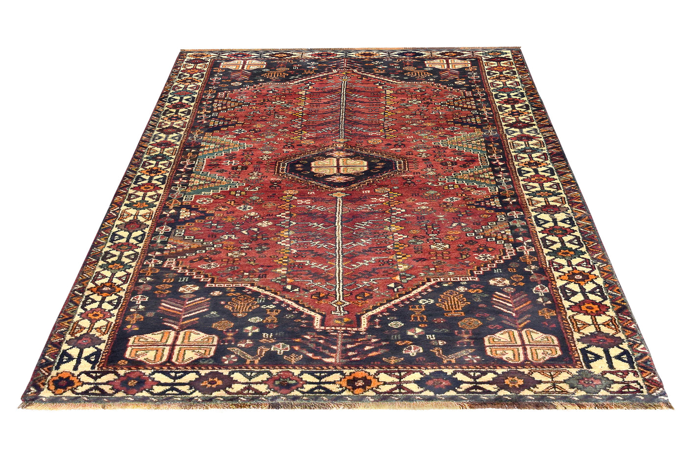 VERSATILE BEAUTY - Shiraz rugs are woven on a wool foundation with a wool pile. These tribal rugs are almost always geometrical in style. Patterns tend to be small medallions or geometric figures scattered across the rugs. Strong reds, terracotta and brown are the most typical colour of Shiraz rugs, they are extremely durable and compliment wooden floors well.