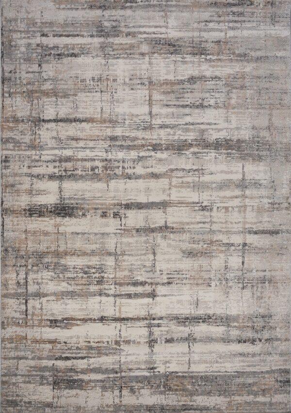 Oakwood rug is a contemporary feel and a softly distressed finish. It is manufactured from polypropylene and artificial silk which gives it weight and a nice soft texture. It comes in abstract and contemporary patterns. The backing of this rug is made of cotton which makes it very light, flexible and easy to handle. The colours are a mix of light & dark greys with a bone back ground and pop of gold.